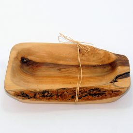 Indicação Biocultural: Olea europaea L. popularmente como oliveira ou oliva, é a única espécie da família Oleaceae com frutos comestíveis. É originária de uma região geográfica que ocupa desde o Sul do Cáucaso até as altiplanícies do Irã, Palestina e a zona costeira da Síria, estendendo-se pelo Chipre até o Egito, povoando todos os países que margeiam o Mediterrâneo. É uma árvore conhecida pela produção do azeite de oliva e de azeitonas (fruto da oliveira), bastante consumidos ao redor do mundo e de grande importância para o mercado Nacional Brasileiro, onde também é cultivada. O objeto é feito com a madeira da oliveira, mostrando outro aproveitamento desta espécie que é o artesanato, do qual são produzidos diversos produtos como colheres, espátulas, vasilhames, tábuas etc., que servem tanto para uso cotidiano como fins decorativos.