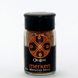 Indicação Biocultural: Além de realçar o sabor nos alimentos, é benéfico à saúde por possuir alto valor nutricional e ser rico em vitaminas A, C e em alguns minerais essenciais para o bom funcionamento do organismo. Faz parte da cultura alimentar chilena, especialmente relacionada aos povos indígenas Mapuche (que significa "gente da terra"), que habitam regiões do Chile e da Argentina. É preparada a partir de uma mistura de pimentas,sendo predominante a "pimenta de cabra". O povo Mapuche conserva muitas receitas indígenas tradicionais preparadas com Merkén. Além do uso alimentício possui a função de proteger contra inveja e mau-olhado, além de atuar como medicinal com função analgésica, anti-inflamatória e desinfetante.