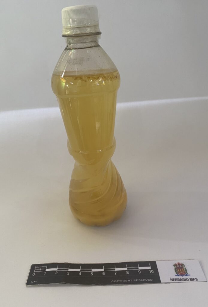 O tucupi é uma bebida líquida, de coloração amarela, componente essencial da culinária paraense, e um dos principais ingredientes de pratos como o pato no tucupi, tacacá e caldeiradas. O líquido amarelo é extraído da mandioca, de espécies do gênero Manihot spp., que se constituem como arbustos de raízes tuberosas. Este tucupi do acervo biocultural é proveniente do roçado de mandioca da D. Josiane, que vende seus produtos em feiras de orgânicos. A extração artesanal do tucupi é feita por prensa manual, confeccionada de madeira. Durante o processo de fabricação da farinha, as raízes da mandioca são raladas e prensadas para a remoção do líquido, que é denominado manipuera, que passa por um processo de decantação, com duração de um ou dois dias para a decantação completa do amido que posteriormente é removido. Após essa etapa o líquido é fervido junto à condimentos para a eliminação do cianeto, ácido que tem seu teor aumentado durante as 72h de decantação. Dessa forma o teor de acidez do líquido pode chegar a valores de pH < 4. O processo de fervura reduz o pH devido ao alto grau de volatilização do ácido cianídrico (HCN).